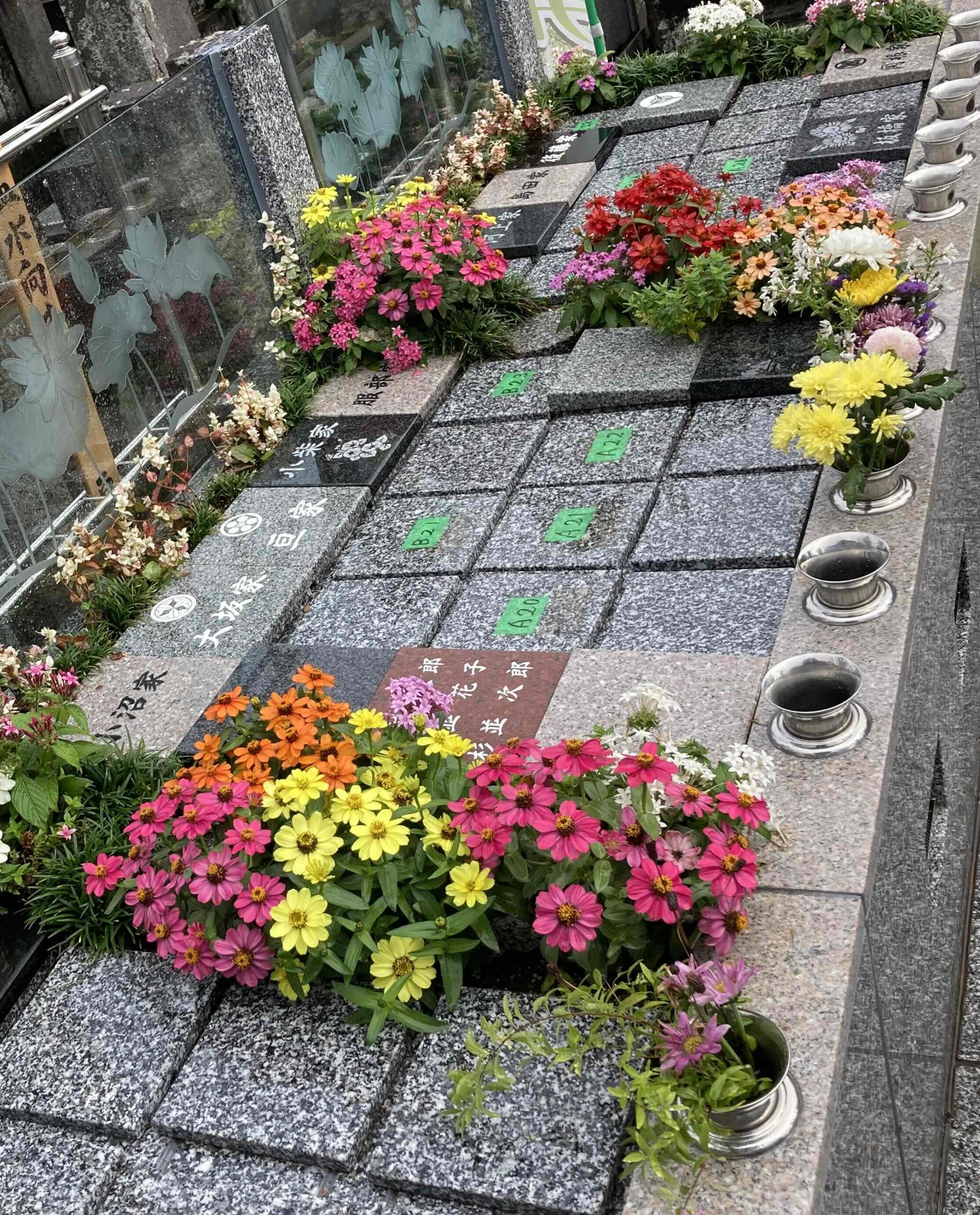 明るく墓域は花に囲まれた華やかな都心型樹木葬です。